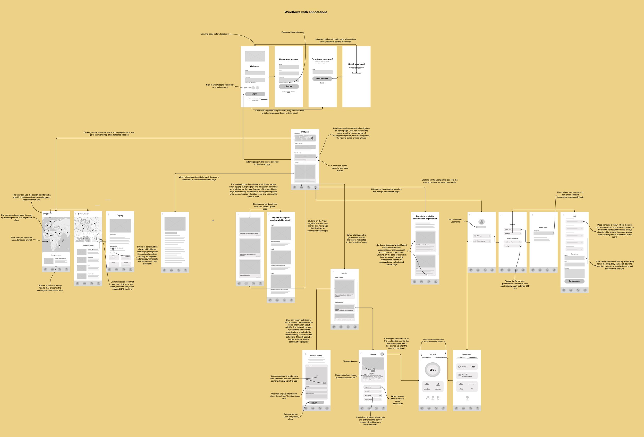 After doing a research through a literature review, competition analysis, survey and three interviews it was clear that focusing on positive and fun engagement would motivate users to use the app and do lifestyles changes to help wildlife and reduce emissions. The app therefore contains quizzes, how-to-guides, fun facts and a world-map that locates endangered species.